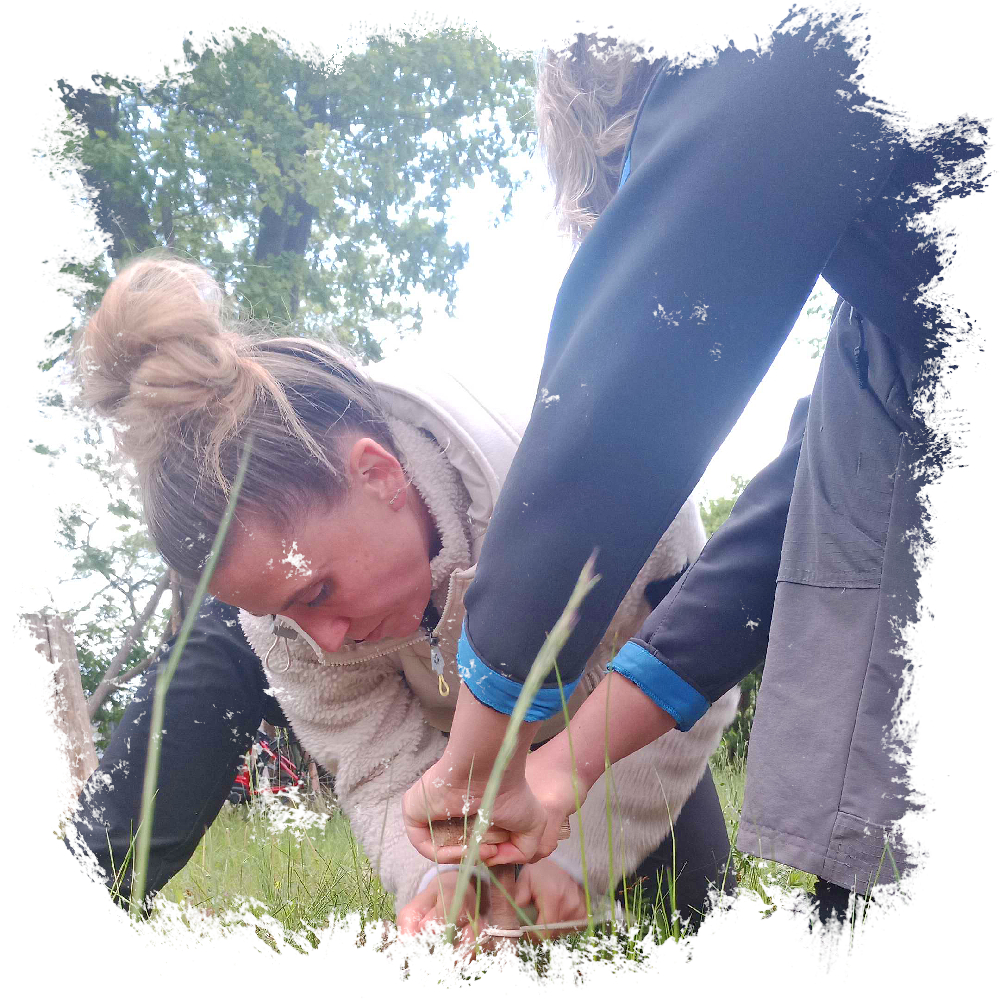 Dann geht’s los. Der Weg führt tief in den Wald hinein, das Gelände wird unübersichtlich. Ihr müsst euch orientieren, eine sichere Stelle finden und gemeinsam einen Notunterschlupf bauen. Aus Ästen, Blättern, Planen – was immer die Natur hergibt.